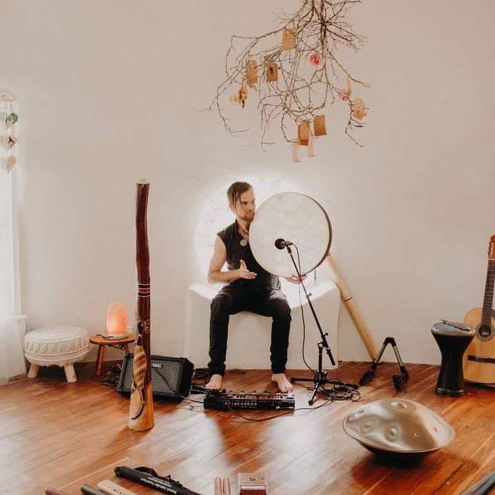 His instruments—Didgeridoo, Handpan, world drums, flutes, harmonic vocals, Ngoni (West African harp), global percussion, and the 72-string Persian Santoor—invite you into a realm where sound becomes a portal for deep healing, presence, and embodied expression.